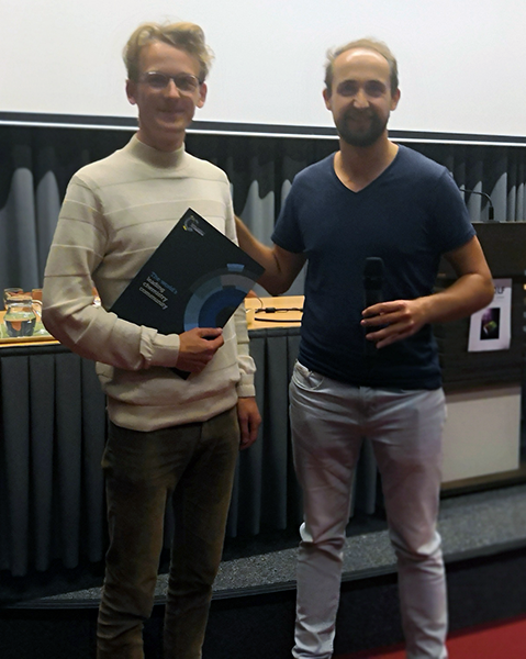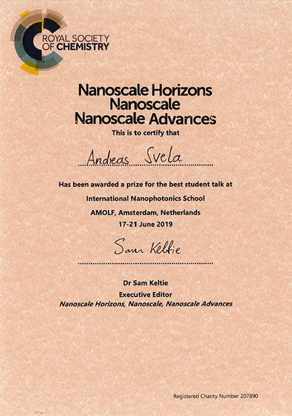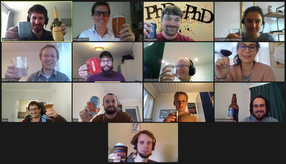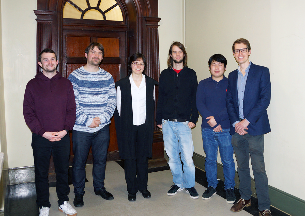 Photos![]() ![]() 5 Jun 2020: Georg Enzian completes his PhD! Left photo: Georg analytically computing a correlation function to model his experimental results. Right photo: Online celebration after Georg's VIVA. Many congratulations Georg! ![]() ![]() ![]() 17 Sep 2019: Our lab is awarded a UKRI Future Leaders Fellowship! To help with public outreach and engagement, we commissioned Tim Rawlinson (left) from London Glassblowing to produce an artistic model of an optical microresonator that will be used in the project (centre). Michael describes the science of the project to UKRI FLF Director Kirsty Grainger (right). ![]() ![]() ![]() 21 Jun 2019: Andreas recieves the best student talk award at the AMOLF Nanophotonics Summer School for his presentation on "Coherent suppression of intrinsic optical backscattering in microresonators". ![]() ![]() 16 Apr 2019: Michael recieves the National Measurement Institute (NMI) Prize. Left photo: Director of the NMI—Dr Bruce Warrington—handing out the award. Right photo: Panel discussion from left: Dr Bruce Warrington, Dr Michael Vanner, and director of the ARC Centre for Engineered Quantum Systems—Prof. Andrew White. ![]() ![]() 26 Nov 2018: Magdalena Szczykulska completes her PhD! Right photo, from left: John Price, Georg Enzian, Dr Magdalena Szczykulska, Lars Freisem, Heng Shen, and Michael Vanner. Our warmest congratulations Magda! |